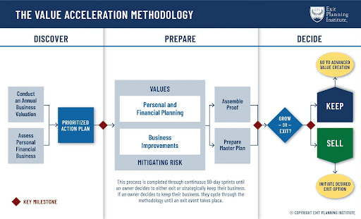 Value advisors are also exit planning professionals who help business owners and advisors make and carry out exit plans that maximize the value of the business. They use their knowledge to help the business find ways to increase its value and lower unnecessary risks, as well as to evaluate how well it is doing right now. In terms of exit planning, the goal of a business value growth advisor is to help owners reach their exit goals, leave a lasting legacy, and maximize value.